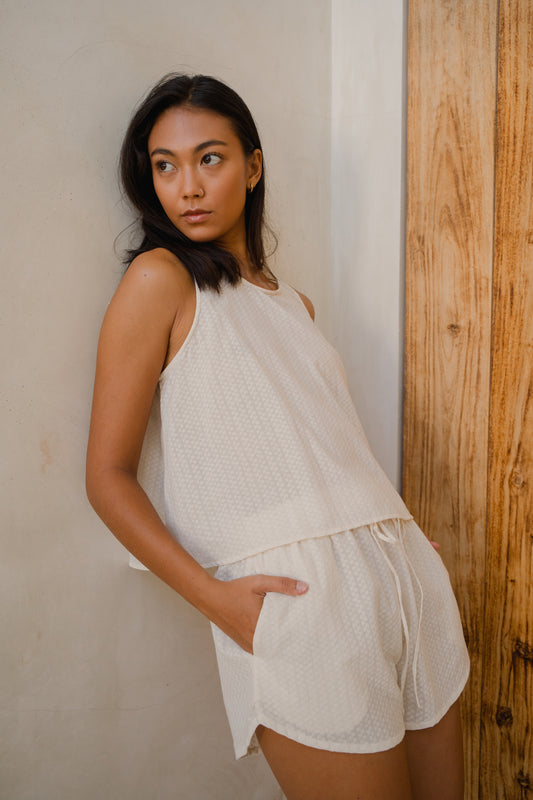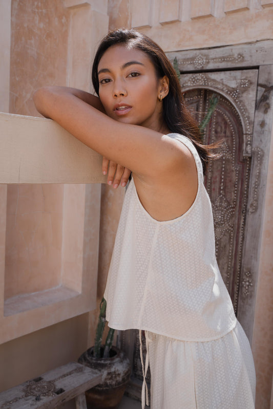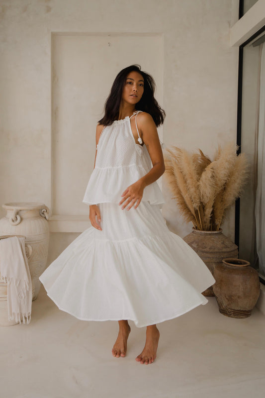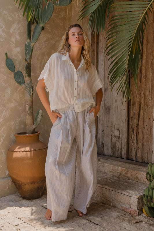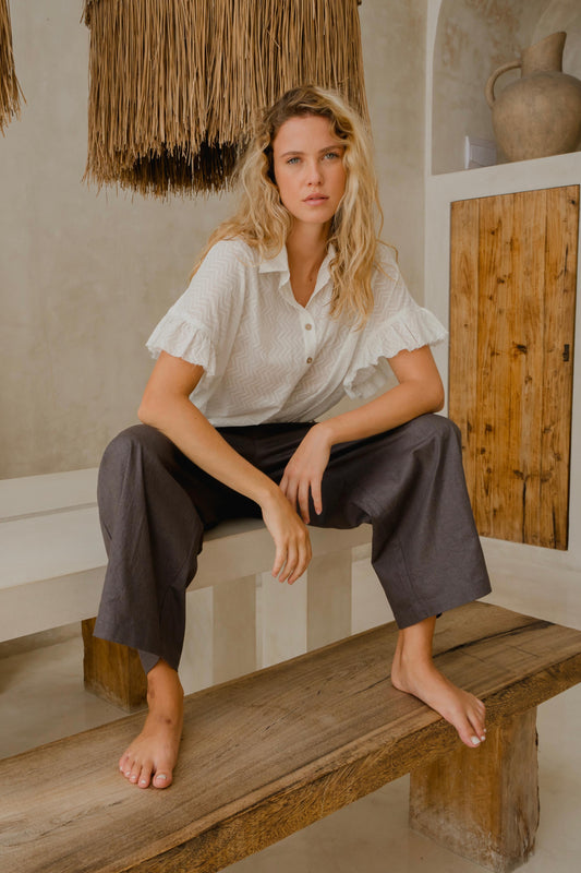 #15 V Ruffle Shirt in Cotton Double Gauze