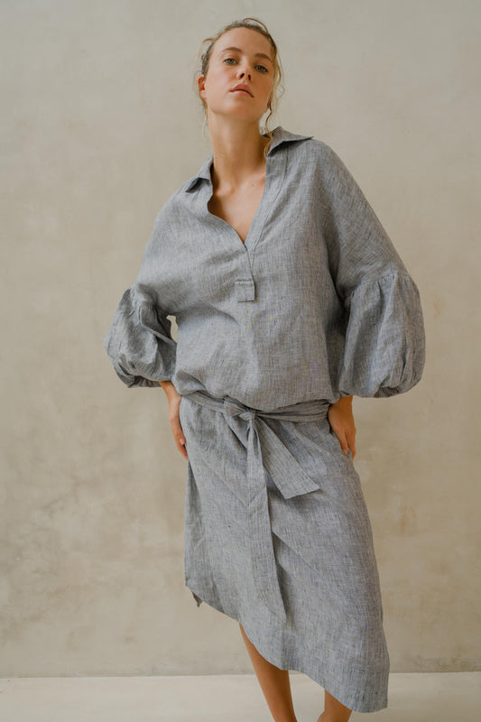 #56 Mini H/L Kaftan Thick Placket Puff Slvs
